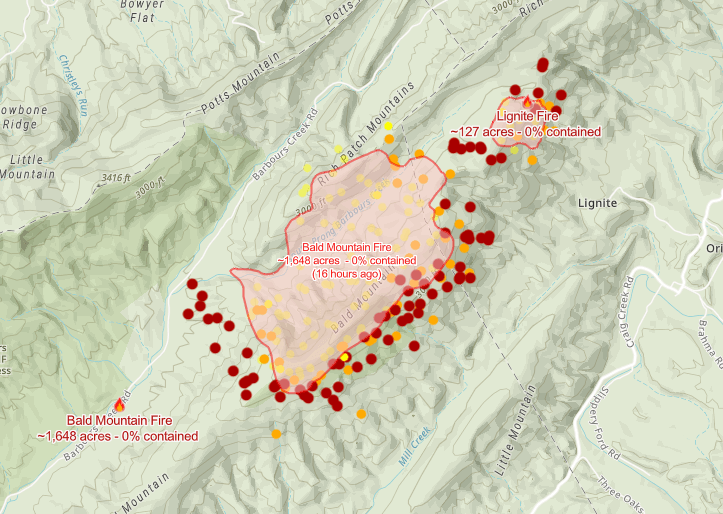 Wildfire Information on Bald Mountain Trail in Craig County, VA