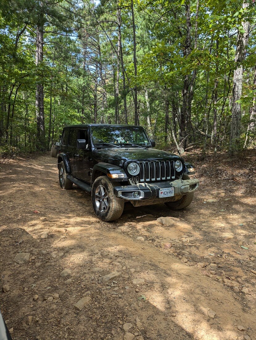 Enchanted Creek Trail is a 7.6-mile off-road route located in Virginia’s George Washington National Forest, adjacent to the Blue Ridge Parkway. The trail begins as a gravel road paralleling the parkway and descends into rougher terrain with natural dirt surfaces, rocks, mud, and stream crossings.